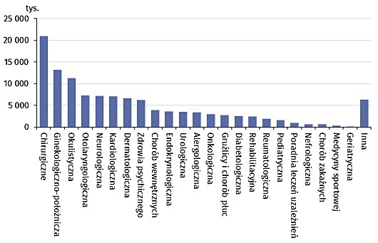 Spośród porad lekarskich 173,8 mln stanowiły porady udzielone w podstawowej opiece zdrowotnej (wzrost o 1,0% w stosunku do 2018 r.). 117,7 mln to porady w opiece specjalistycznej (wzrost o 1,2% w skali roku).