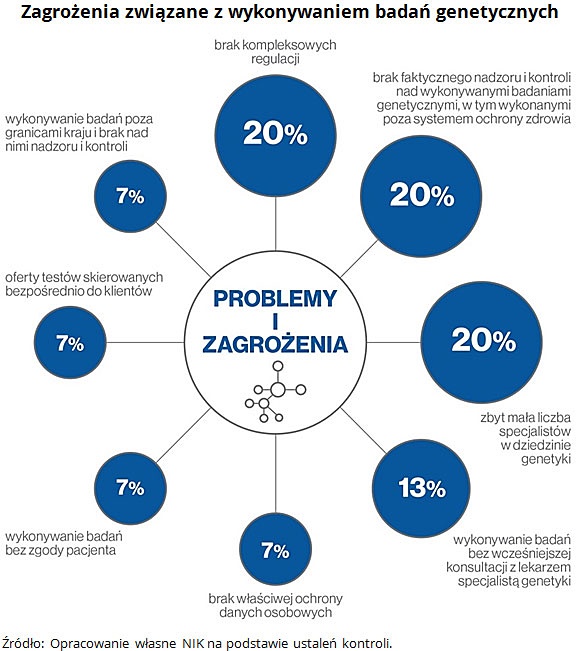 Wobec dynamicznego rozwoju genetyki i zagrożeń wynikających z niekontrolowanego dostępu do badań i informacji genetycznej, Najwyższa Izba Kontroli sformułowała w Informacji o wynikach kontroli następujące wnioski do Ministra Zdrowia o: