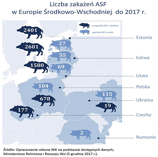 W Polsce pierwszy przypadek ASF wystąpił u dzików w lutym 2014 r. Choroba trafiła do naszego kraju ze wschodu – z Białorusi. Obecnie z wirusem walczą wszystkie państwa za wschodnią granicą Polski.