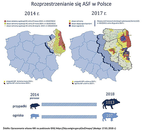 Najwyższa Izba Kontroli ocenia, że program okazał się nieskuteczny, bo nie osiągnięto jego podstawowych celów. Przede wszystkim nie zahamowano rozprzestrzeniania się wirusa ASF w Polsce. Do października 2017 r. liczba przypadków ASF u dzików wzrosła do 567, a ognisk u świń do 103, z czego 80 ognisk odnotowano w samym 2017 r. Liczby te z dnia na dzień rosną. Dlatego dwukrotnie rozszerzono obowiązywanie programu o kolejne gminy. Jednak zdaniem NIK reagowano zbyt wolno. Mimo wystąpienia w 2016 r. przypadków ASF u dzików w kolejnych powiatach, to dopiero w lipcu następnego roku podjęto decyzje o objęciu programem gmin województwa podlaskiego, mazowieckiego i lubelskiego. W listopadzie 2017 r. wirus przekroczył linię Wisły – odnotowano wystąpienie zakażenia dzików w okolicach Lasek.