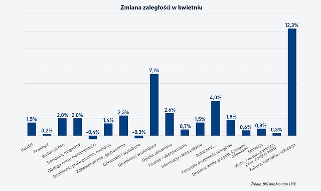 Zaległości spadły w kwietniu w dwóch z sektorach: