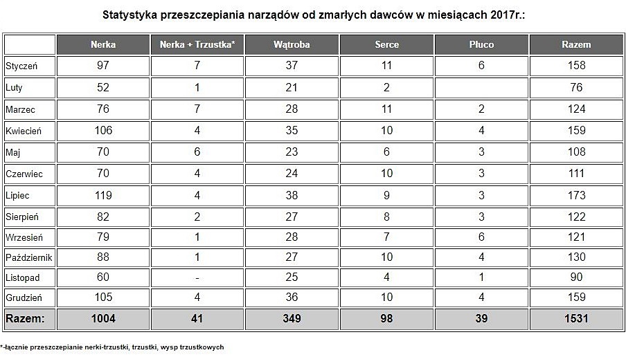 Hiszpania zajmuje pierwsze miejsce na świecie pod względem liczby dawców organów oraz przeprowadzonych transplantacji. W ubiegłym roku łącznie przeprowadzono 5259 takich zabiegów. Wcześniej w Hiszpanii nie było tylu dawców organów oraz zabiegów transplantologicznych, co w roku 2017.