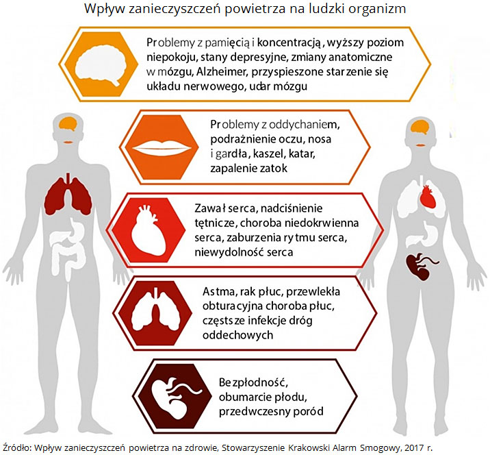 Negatywny wpływ zanieczyszczeń powietrza na zdrowie i życie ludzkie jest obecnie dobrze udokumentowany i potwierdzony licznymi badaniami zagranicznymi.