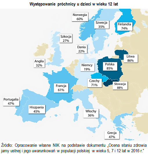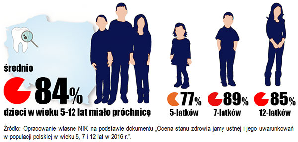 Najwyższa Izba Kontroli opublikowała raport pokontrolny. Podkreśla w nim, że próchnica zębów stanowi istotny problem zdrowotny i społeczny. Dodatkowo pogłębia go niska świadomość Polaków. Analiza wyników monitoringu stanu zdrowia jamy ustnej z 2012 r. wskazywała, że w Polsce 80 proc. dwunastolatków miało próchnicę. W 2016 r. próchnicę miało już 85 proc. dwunastolatków.