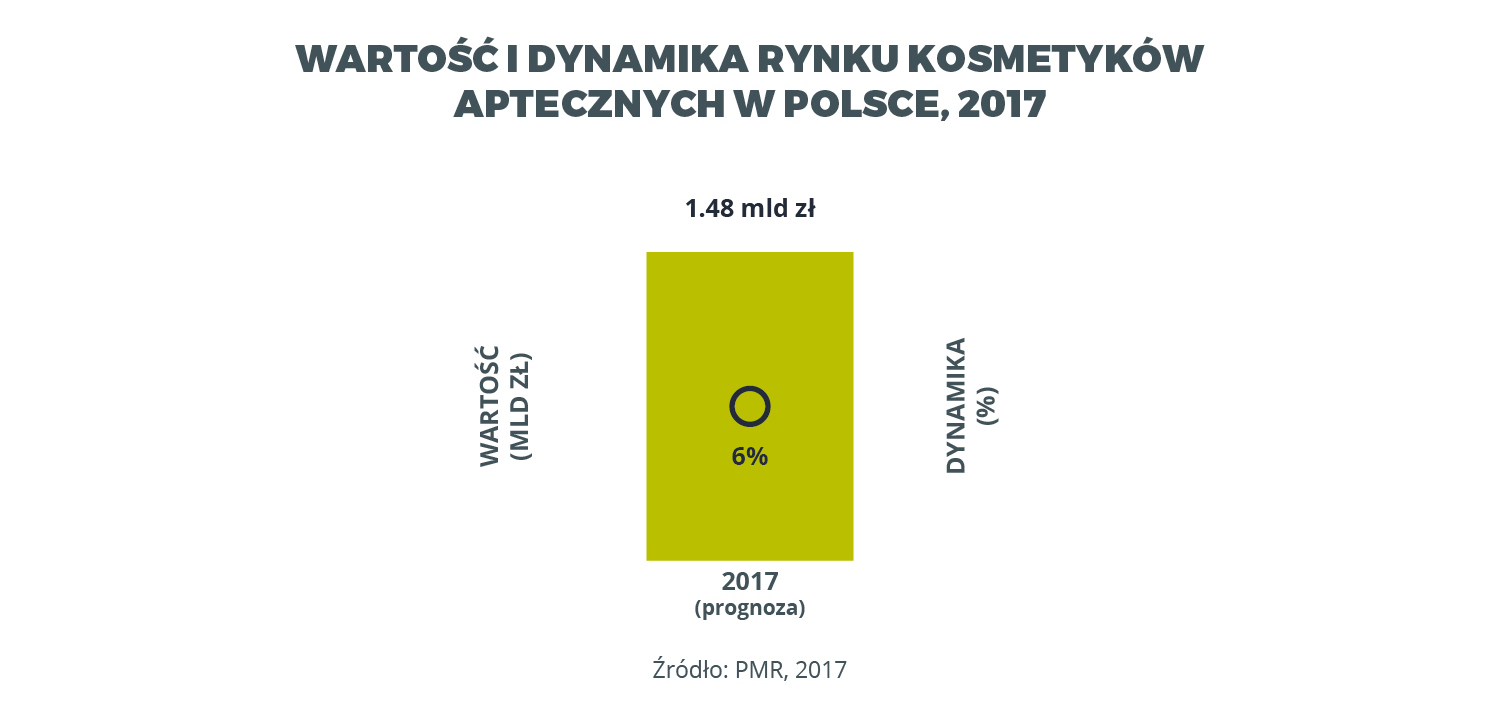 PMR ocenia, że prognozowana wartość rynku kosmetyków aptecznych w Polsce osiągnie w 2017 r. wartość 1,48 mld zł, przy rocznym wzroście na poziomie wynoszącym 6 proc.