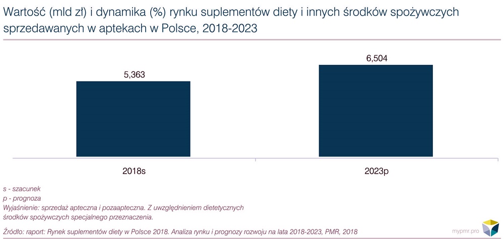 Źródło: raport „Rynek suplementów diety w Polsce 2018. Analiza rynku i prognozy rozwoju na lata 2018-2023”, PMR, 2018