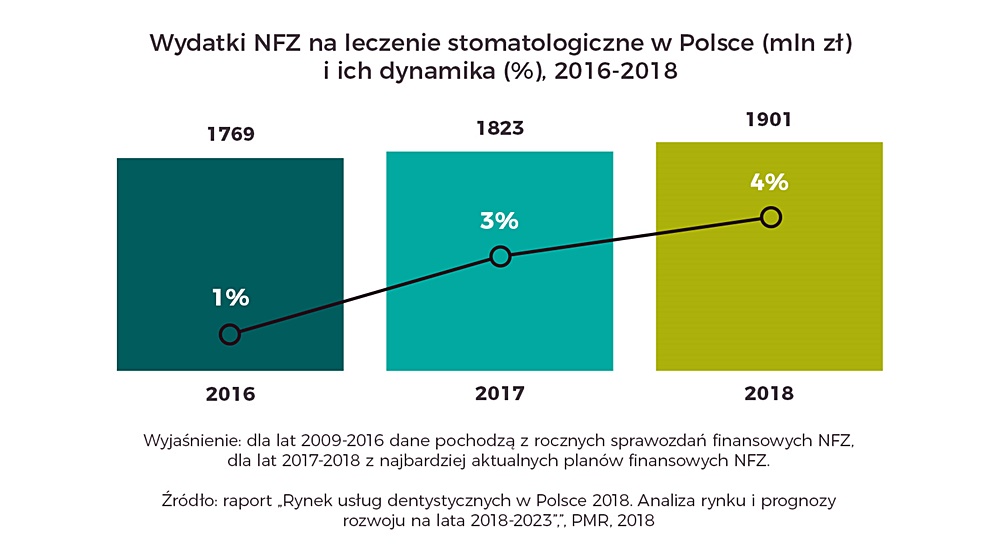 W poprzednich latach wydatki NFZ na opiekę dentystyczną w Polsce utrzymywały się na niemal niezmienionym poziomie. Według ostatecznego planu finansowego NFZ, w 2017 r. wydatki na ten cel wzrosły pierwszy raz od 2012 r. więcej niż 1 proc.
