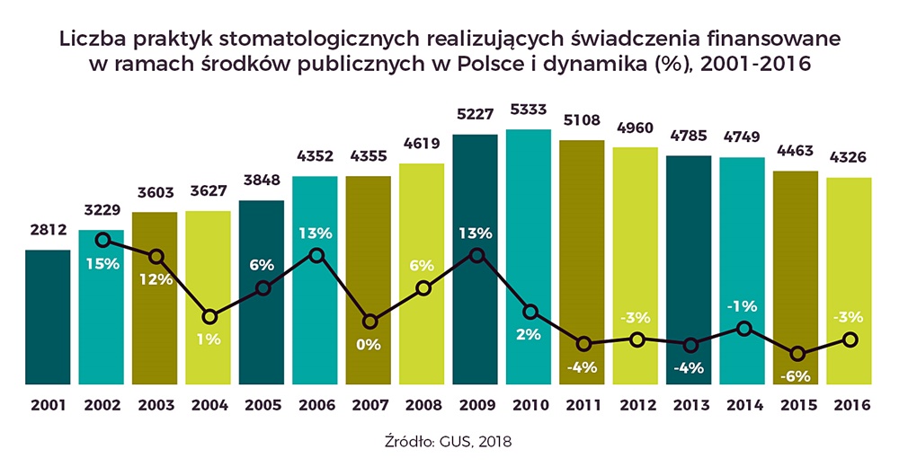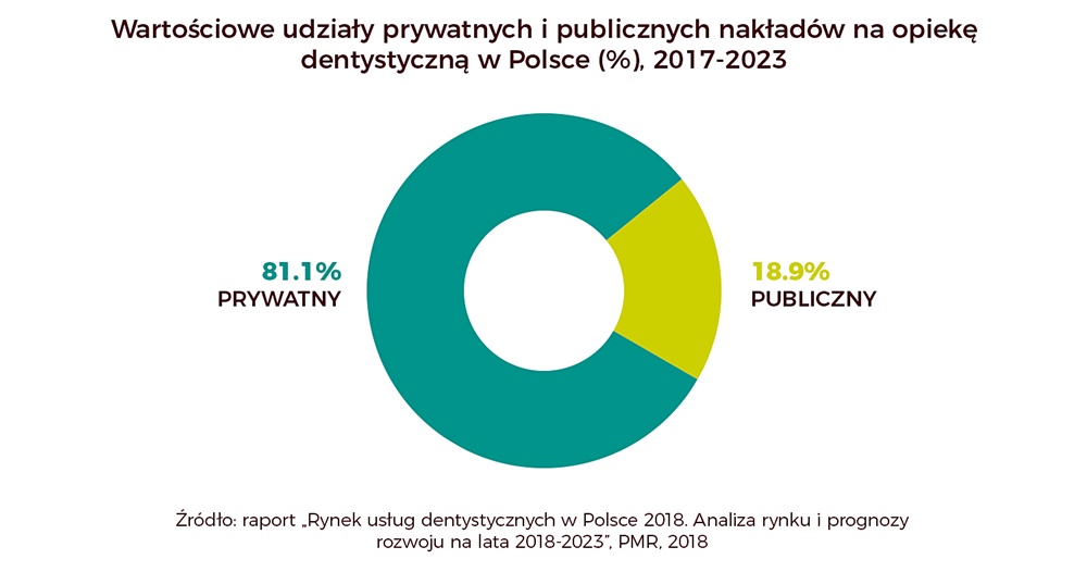 - rosnąca świadomość Polaków co do wyglądu i stanu zdrowia zębów, który wpłynie pozytywnie przede wszystkim na prywatną część wydatków na usługi dentystyczne;